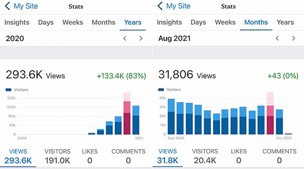 S.K.Yeo started www.SengkangToPunggol.sg in 2016 and has grown its website traffic substantially from 10K visitors(2016) to 110K visitors (2019) to 293K visitors (2021). The below website traffic chart snapshots.